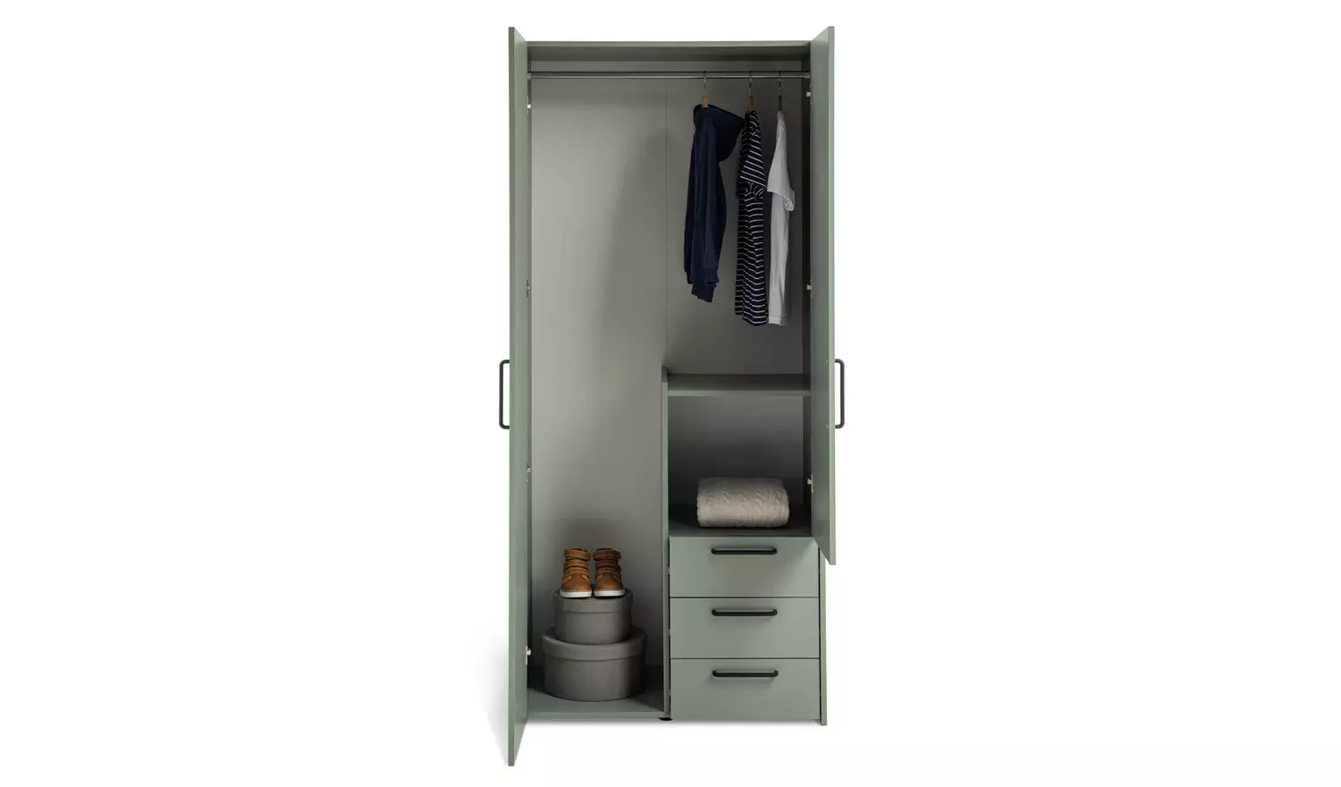 - Wardrobe made of counter wood with beechwood legs, finished with high-quality duco paint.