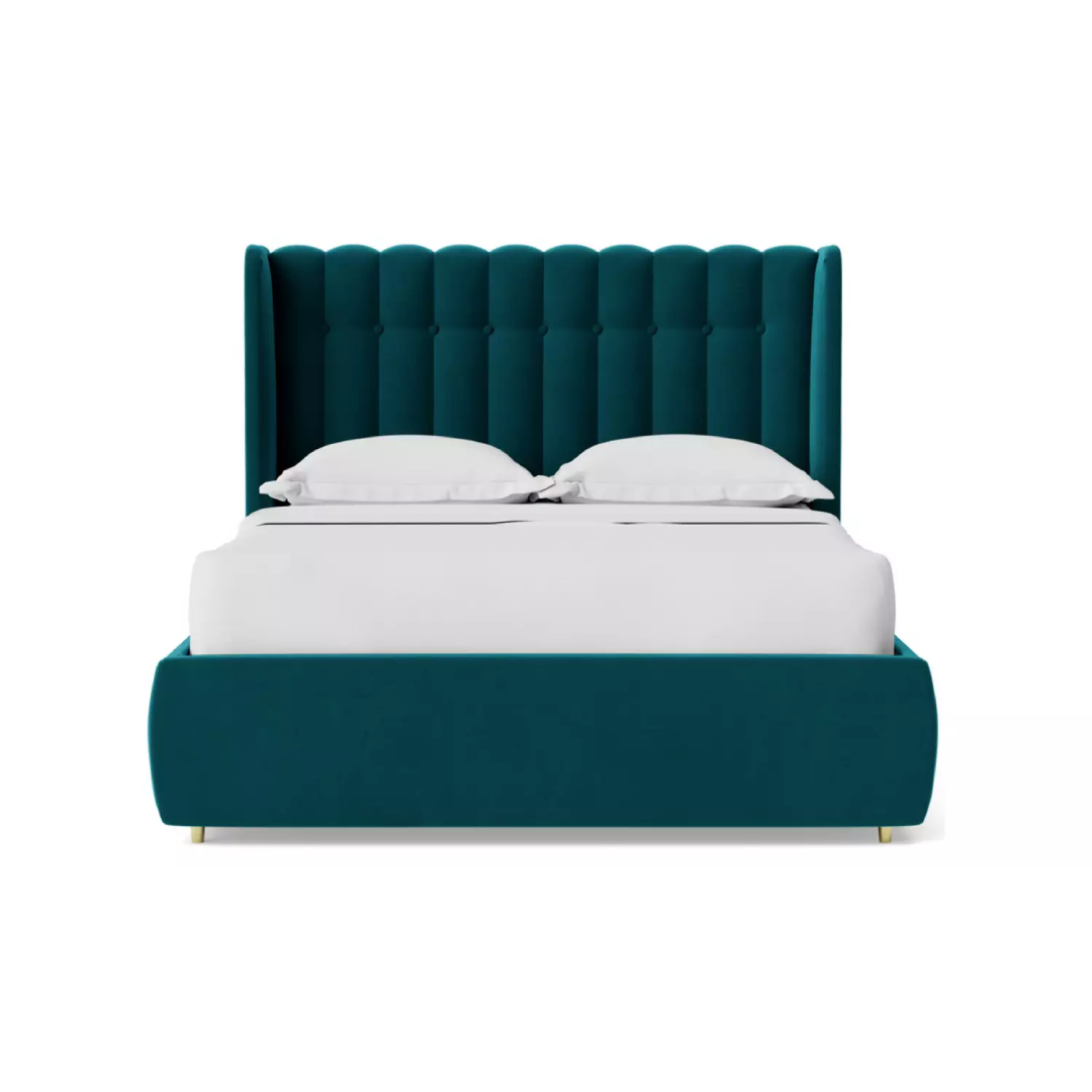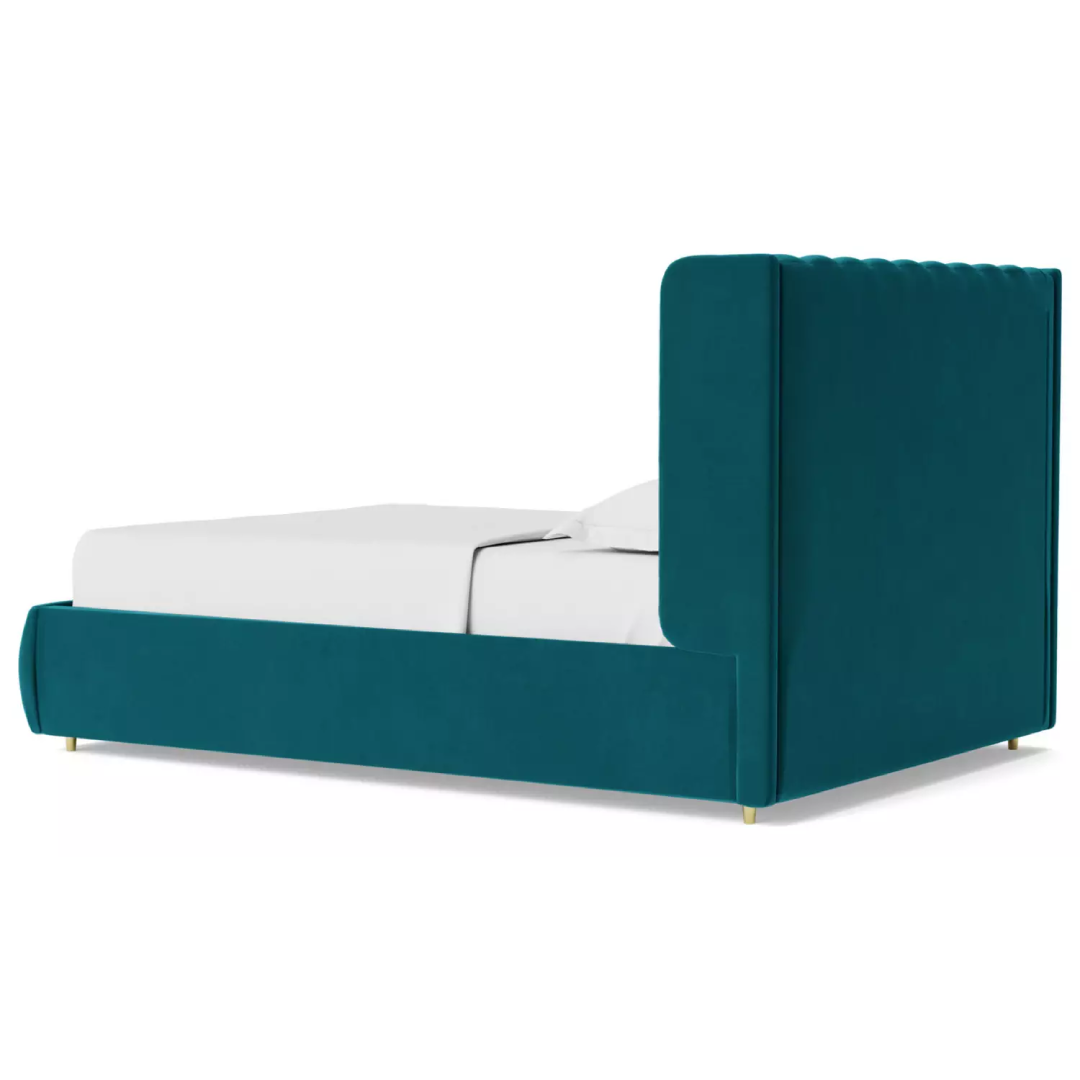 Bed made of counter wood with beechwood, Velvet fabric.