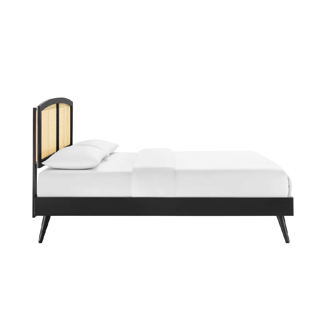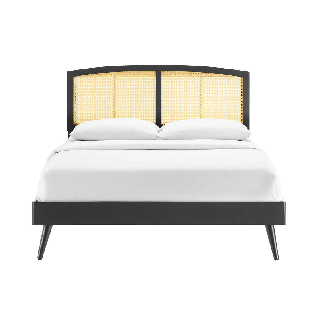 Bed made of counter wood with beechwood legs, finished with high-quality duco paint and natural cane details.